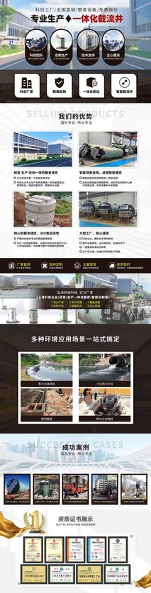 智能一體化雨污截流井,作為城市排水系統中的一項先進技術設施,智能分流井充分體現了現代排水技術的效果與智能化水平。以下是其具體功能的詳細闡述:初雨限流、晴天截流、大雨直排、防止倒灌。
