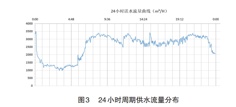 水廠的產能是17萬m天,用水主要集中在24:00點前,如果使二次供水水箱在每日0點后補水,將會在-定程度上緩解白天供水壓力。