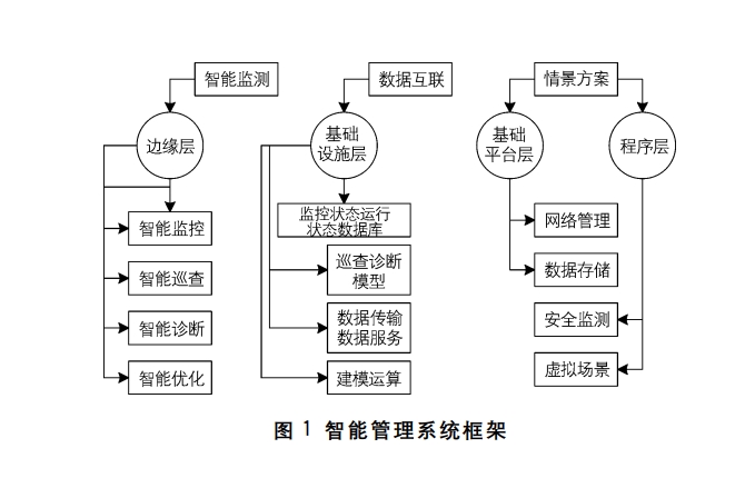 水利系統中的一體化泵站平臺的管理系統構建主要脫胎于工業互聯網技術的管理系統藍圖,其主要包含邊緣層、基礎設施層、基礎平臺層、程序層等層級!-小]其中,邊緣層主要以安裝在一體化泵站上的各種監測設備如信號監測機、流量分析儀以及接受、發送傳輸網絡信號的網絡通路、網關系統為主。上述邊緣層的主體是泵站智能管理平臺的硬件基礎,同時也是整個智能水利系統運行的節點基礎。基礎設施層相當于智能泵站平臺管理系統的數據存儲器,它會將監測中心與一體化泵站監測儀器間的傳輸數據進行實時保留,根據需要還可以進行有關功能的數據運算。基礎平臺層的主要功能是為整個平臺提供操作系統和管理軟件,以實現實時數據的可視化和可操作性。程序層相當于整個智能管理平臺的頂層建筑,其作用是通過結合各泵站的實時監測數據和不同的程序算法,發布場景應用方案,可通過可視化平臺、手機的管理軟件和網頁等進行查看。智能泵站的管理系統構架關系如圖1所示。