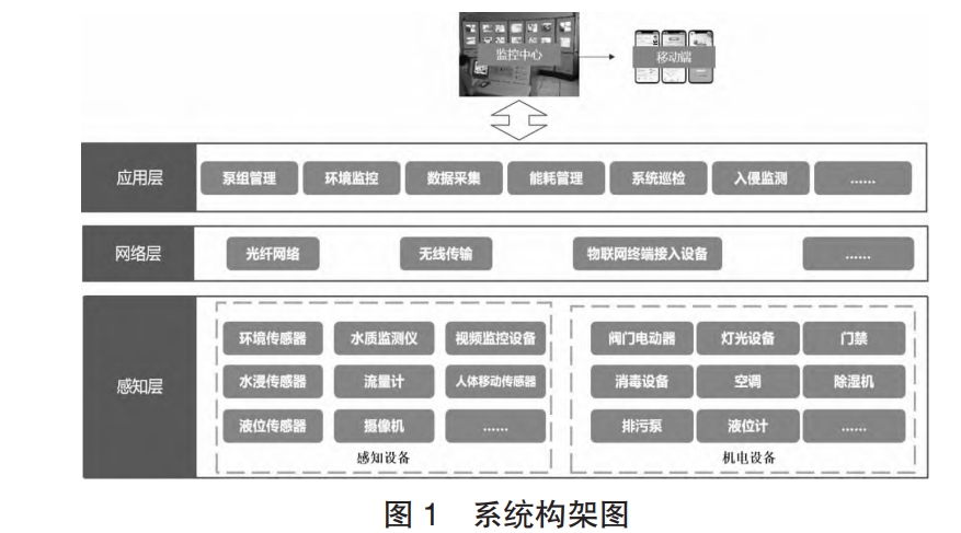 應(yīng)用層即泵房管控平臺(tái),管理人員在監(jiān)控中心或者通過移動(dòng)端設(shè)備訪問管控平臺(tái),實(shí)現(xiàn)對(duì)泵房的泵組管理、環(huán)境監(jiān)控、能耗管理、系統(tǒng)巡檢、入侵監(jiān)測(cè)、數(shù)據(jù)管理、表計(jì)監(jiān)測(cè)等管理。