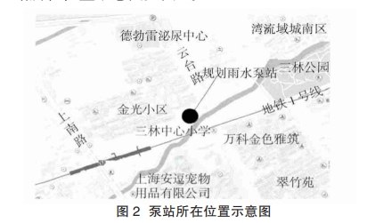 雨水泵站規(guī)劃用地為東西向狹長地塊,規(guī)劃紅線西北側(cè)緊貼現(xiàn)狀金光小區(qū)圍墻,東側(cè)為規(guī)劃云臺路、灣流域城三期,南側(cè)為現(xiàn)狀三林塘港。規(guī)劃雨水泵站場地現(xiàn)狀房屋均已拆遷,主要為建筑垃圾堆積,但規(guī)劃紅線南側(cè)有2棟民宅,近期不拆遷。泵站所在位置示意圖見圖2