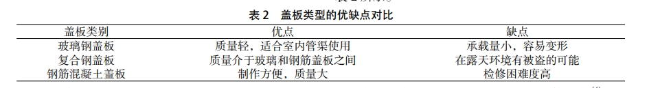 選擇蓋板時,要考慮設備需要吊裝等運行情況,因此,蓋板的頂部要設計大小不一的預留孔,泵站的頂部要鋪蓋板,蓋板的選擇多樣,各有優缺點,如表2所示