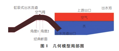泵站出水流道是水泵導葉出口到泵站出水池之間的過渡管道,其作用是調整高速紊亂的水流,并在低損失下回收動能。虹吸式出水流道的虹吸形成過程是水流將儲存在管內的氣體排出并充滿水管,在駝峰段形成真空。該過程分為水力驅氣段、水力挾氣段及形成穩定虹吸流段3個階段1其中水力挾氣階段是虹吸形成過程中最關鍵的階段,耗時最長,若水位不滿足要求或流量設計過低,該階段時間將極大延長,甚至無法形成虹吸,已有研究[23發現,虹吸形成水力挾氣階段氣團主要位于駝峰段,并且流道內氣團大小是影響挾氣時間的關鍵因素之一。李海峰等!研究了真空破壞閥在虹吸式出水流道虹吸形成過程中的啟閉狀態及流量變化;HOUICHIL等對兩種虹吸流道進行了物理試驗,確定了其使用范圍;BABAEYAN-KOOPAEIK等對設計工程中的溢洪虹吸流道進行了模型優化。總體而言,對高揚程泵站虹吸式出水流道的啟停過程研究較少,出水流道內水氣變化情況的研究也鮮有涉及。